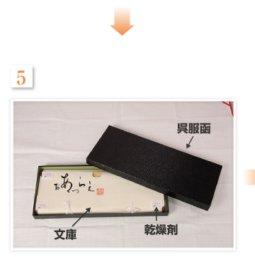 左後身頃に箔がある場合は擦れるのを防ぐため柄あて用雲竜紙をあてます。